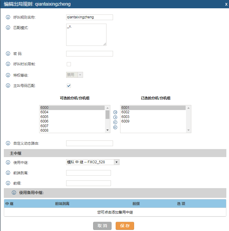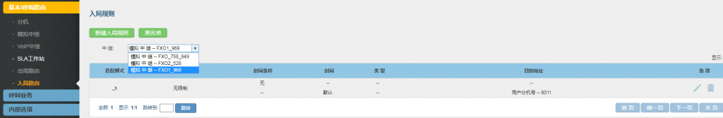 可以选择之前创建的各个FOX端口所对应的配置文件进行设置,比如上面的696号码已经设置成6011分机号独占模式;