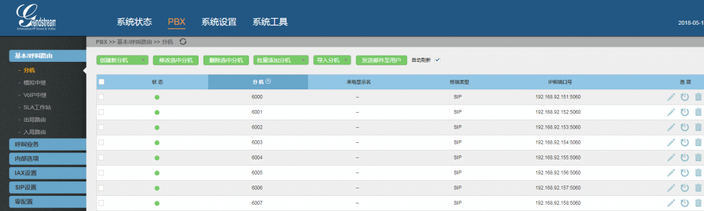 等待10秒,点击状态,就能看到这个分机已经成功上线了。