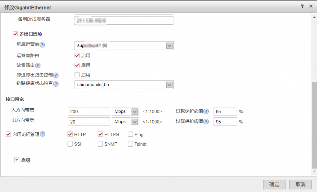 关于访问控制,如果只想允许这条链路的外来请求访问http、https就勾选相应的选项,不勾选即不允许。