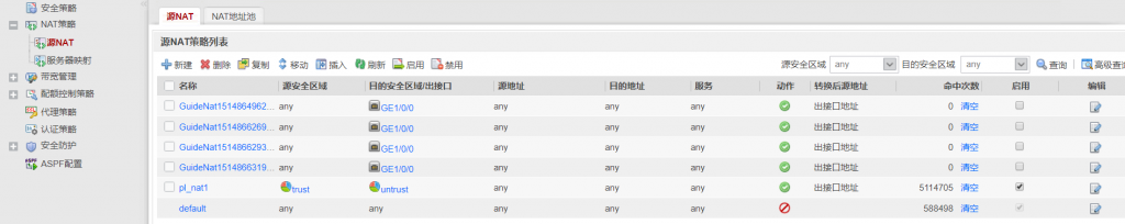 配置trust (内网)到untrust(外网)的转发规则,如图,博主不做任何限制允许全部 客户端转发,当然你也可以根据自身要求配置;
