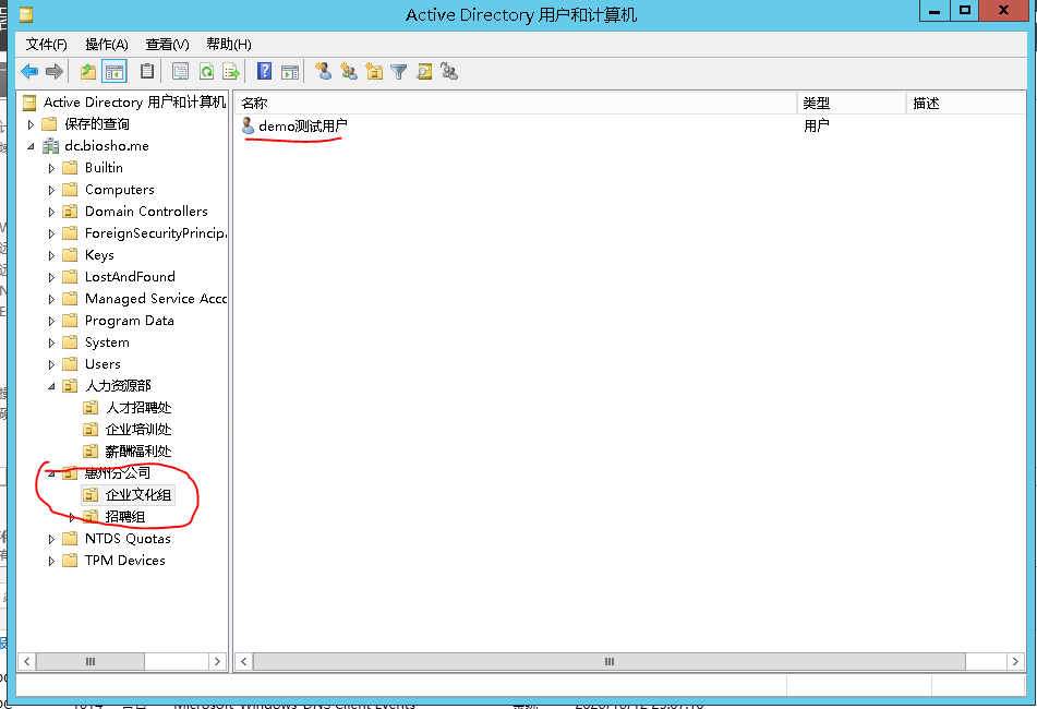 创建相应的组织单位(OU),及所属用户