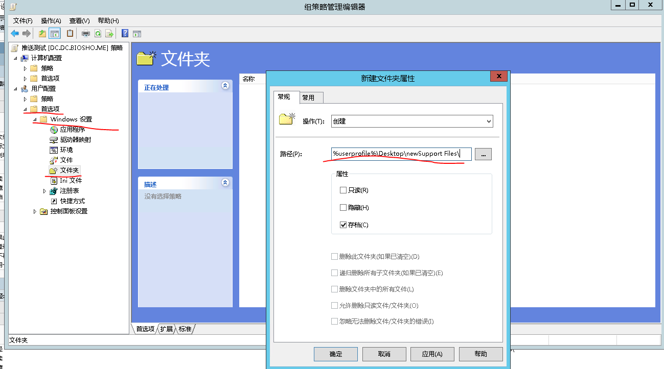 创建域用户桌面文件夹: