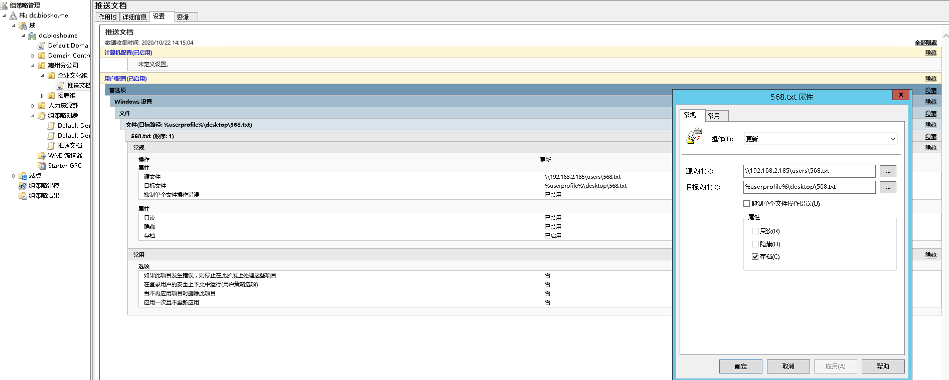 推送文件到域用户桌面